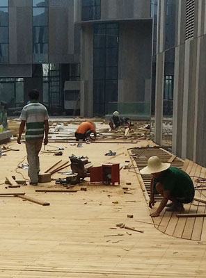 木質(zhì)座椅打造一片休憩的空間,布藝的抱枕,溫馨的燈光,給人內(nèi)心充盈的舒適和溫暖感覺!置身其中,放松心情,整個人都沉靜下來!自家若有個大庭院,木平臺的規(guī)劃讓花園更具人文氣息,木地板、木柵欄、木樓梯、木亭廊……起到藝術的裝飾作用,同時布置一些照明燈具,夜晚的庭院更顯沉穩(wěn)和品味。 防腐木產(chǎn)品誰來施工? 庭院剛施工完成,柳岸木的葡萄架開裂了?  開車去現(xiàn)場看了一下,做好的葡萄架木質(zhì)很松、裂口很大,可以確定開裂的原因:用的不是柳桉而是松木的一種,但是具體是哪一類松木也分辨不出來,裂縫產(chǎn)生主要原因是木頭沒有烘干,含的水分很多,經(jīng)過風吹日曬,木頭中的水分蒸發(fā)發(fā)生收縮變形而產(chǎn)生裂縫,把木頭換掉基本是不可能了,唯一的解決辦法就是等裂縫穩(wěn)定以后用膩子填滿重新做油漆。  事情解決了,正好業(yè)主也在,就問他簡單溝通了下,了解了一下情況,幫他做花園的是找上門來的一個施工隊,柳桉防腐木地板3公分厚280元/平方,葡萄架報價500元/平方,就業(yè)主算了一筆賬,正宗柳桉木現(xiàn)在市場價按5000元一立方計算,不算損耗,一立方可以做33個平方地板,每平方是150元,木工安裝費市場行情是60元/平方,油漆30元/平方,加上地板下的木楞50元/平方加起來就是290元/平方,再加上損耗和正常的公司利潤,280元/平方的柳桉防腐木地板怎么能做的出來呢